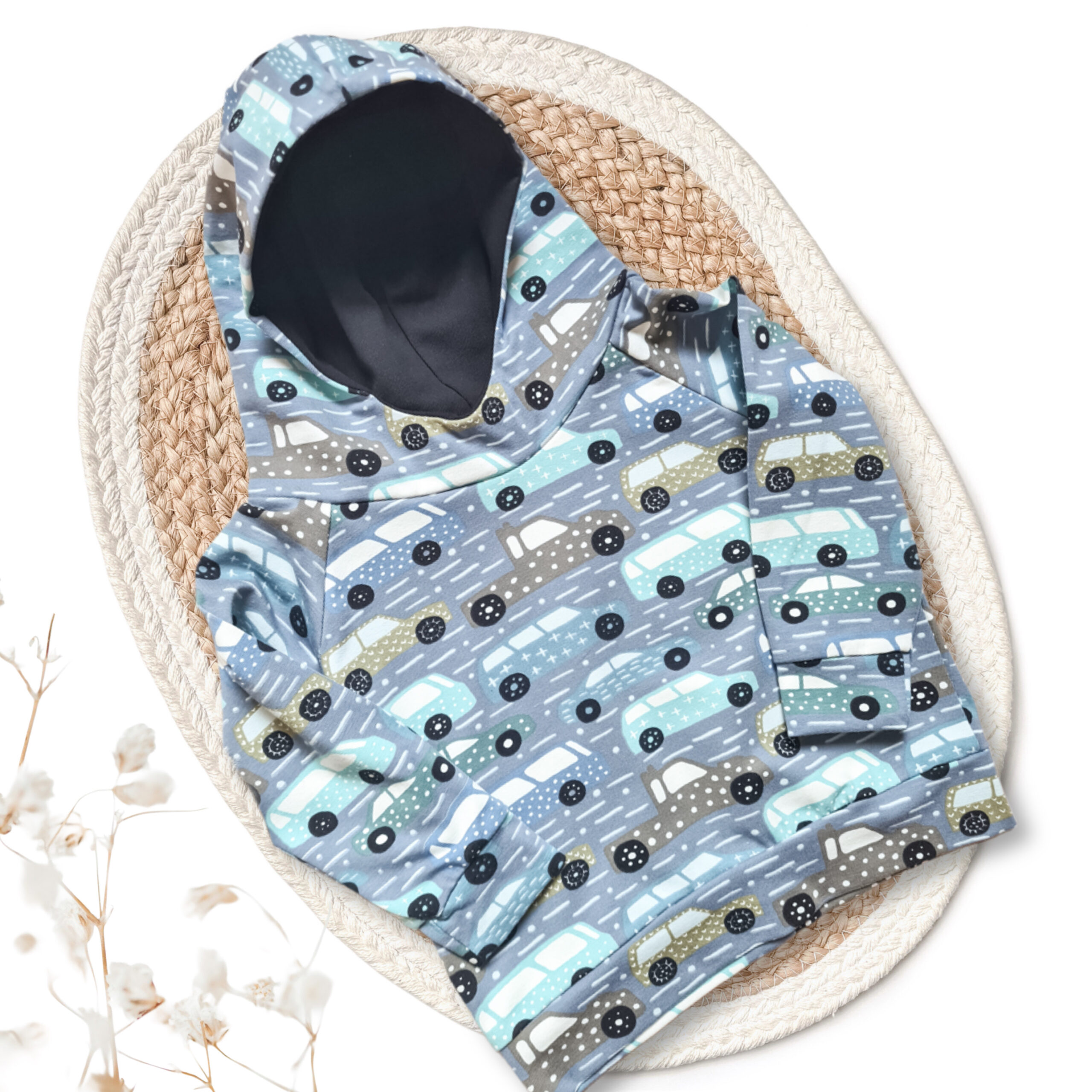 Udoben kapucar z motivom avtomobilov bodo malčki vzljubili. Narejen je iz udobnega jerseya. Primeren je za vrtec, saj je lahkoten in tanek. Nepogrešljiv je tudi poleti, v hladnih večerih in za večerne sprehode ob morju.